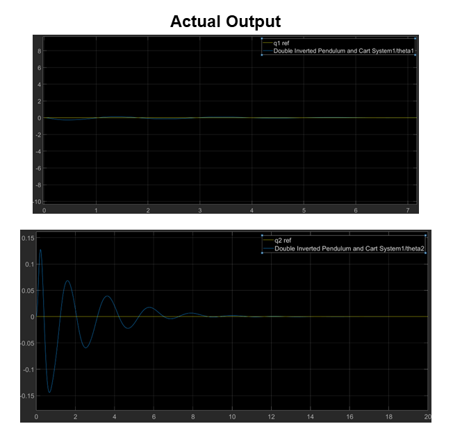 As can be seen from the above results, the pendulum stabilizes itself after ~ 9 seconds with the help of MPC controller. Hence, task objective is achieved.